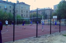 На баскетбольной площадке играла волейбольная команда «Зенит» с выпускниками гимназии 2015 года.