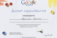 Срочно! Ученица 8а класса Абдуллина Аделина участвует в Международном конкурсе рисунков на тему «Космос». Сегодня 31.03.14 – последний день голосования! Просьба проголосовать за ее рисунок на ее странице в контакте id134101891 или на странице http://www.google.ru/doodle4google/vote.html#d=d3-10