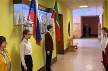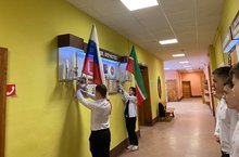 Началась новая учебная неделя. Право вынести флаги Российской Федерации и Республики Татарстан предоставилось учащимся 7А класса, также ребята исполнили гимны.