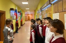 Началась новая учебная неделя. Право вынести и установить флаги Российской Федерации и Республики Татарстан предоставилось ученикам 6Б класса. Также ребята исполнили гимны.