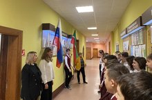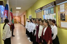 Утро понедельника началось с выноса и установки флагов Российский Федерации и Республики Татарстан, а также исполнения гимна. В первый день второй четверти это право предоставилась ученикам 7Б класса.