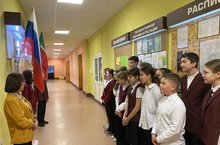 В этот понедельник право вынести флаги предоставилось ученикам 7А класса. После того, как флаги были установлены, ребята исполнили гимн Российской Федерации и гимн Республики Татарстан.