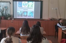 В рамках месячника по профориентации в 7Б классе прошел кл.час "В мире профессий".