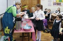 К ученикам 1а класса пришла в гости профессор Люля. Она познакомила ребят с жидким азотом, а они с удовольствием помогали проводить опыты. Свойства жидкого азота привели в восхищение детей! На глазах у ребят профессор Люля и её помощник Амир приготовили очень вкусное крио-мороженое. Ребята получили бурю положительных эмоций! Поздравили с днём рождения Мадримова Амира, Ковалеву Алину, Лебедева Сашу.