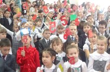 Этому знаменательному дню был посвящен районный смотр строя и песни. Нашу гимназию представляли юнармейцы 8А класса, под руководством Сарбаева И.Е. и Садыковой Л.И.