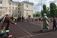 Сегодня в школьный лагерь приезжали гости из Национального музея. Для ребят они провели праздник «Сабантуй». Все мы знаем, что «Сабантуй» — это самый любимый праздник, проведение которого означает окончание весенних посевных работ. Он отражает единство всех национальностей, проживающих в Поволжье – татар, русских, удмуртов, марийцев, башкир, чуваш и других. Ребята проявили свою ловкость и смекалку в традиционных народных играх – «Бег с коромыслом», «Бег в галошах», «Перетягивание каната».