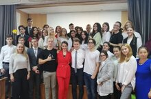 После постановки выступила руководитель Linguo Drama - Виктория Нежданова. В своей речи она затронула тему изучения иностранных языков и рассказала молодым людям про Казанский Федеральный Университет. В частности - про Институт Международных Отношений.