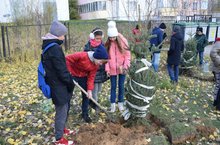 «Подарок школе»- величественные деревья - голубые ели. В рамках экологической акции 27 октября учащиеся и родители 6Б класса (классный руководитель Гаранина М.А.) сделали «Подарок школе», организовали посадку голубых елей. Теперь эти величественные деревья - голубые ели будут расти вместе с теми, кто их сажал, и станут украшением школьного двора.
