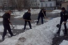 19 апреля мальчики старших классов организовали средник по уборке территории гимназии от мусора и ворошения снега! Молодцы ребята!