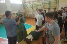 9 ноября руководитель юнармейского отряда «Равнение на знамя» Сафин И.Г. провел с учащимися практическое занятие: «Одевание противогаза и ОЗК». Целью данного занятия - обучить способу одеванию средств индивидуальной защиты.