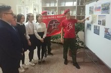 9 ноября для популяризации вооруженных сил РФ юнармейский отряд «Равнение на знамя» провели просветительскую беседу с учащимися «Виды войск в Вооруженных силах РФ»