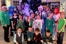 Сегодня старшеклассники решили устроить настоящий праздник для учеников начальной школы. Они нарядились в яркие костюмы Деда Мороза, Снегурочки и даже символа наступающего года — красивой Лошадки.