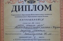 21 марта прошла XXVII открытая научно-практическая конференция школьников «Мир Науки». На данной конференции 1 место занял ученик 11А класса Якунин Максим на секции физики. Научный руководитель - учитель физики Хакимуллина Н.М. Поздравляем!