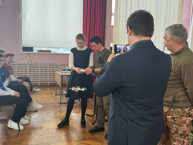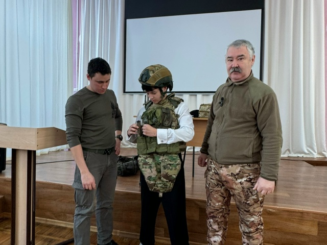 Ветераны СВО Сафин Ленар Матигуллович, кавалер Ордена Мужества и Христофоров Руслан Альбертович, участник СВО рассказали ребятам о любви к Родине, отваге на СВО, показали обмундирование. Ребята на практике примерили бронежилет, управляли дроном разведчиком,разобрали тактическую аптечку, посмотрели ролики с боевых действий… очень долго ребята общались с гостями и были рады встречи с героями