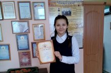 24 ноября 2018г.на базе гимназии 37 в городской НИК школьников им.Ушинского Шулепова Юлия, ученица 4"Б" класса под руководством Елены Евгеньевны Савиной защищала работу в секции "Мы -Россияне" на тему "Никто не забыт-ничто не забыто!" Юлия получила Сертификат.Молодец! 24.11.2018