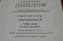 Поздравляем Сайфутдинова Руслана, который стал призером Регионального этапа Всероссийской олимпиады школьников по физической культуре. Молодец! 22.01.2017