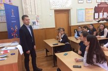 19.10.16 г. нашу школу посетила дирекция спортивных и социальных проектов в лице старшего менеджера по работе с волонтерами Мубаракшин А.И., который для учащихся 10-11 классов провел «футбольный урок» к предстоящему чемпионату Мира по футболу. Урок был в форме интерактивной беседы с учащимися, где самым активным участникам были вручены памятные призы. 19.10.2016
