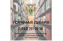 Прокуратура Республики Татарстан сообщает жителям региона о запуске горячей линии по вопросам, связанным с соблюдением законности и порядка при приеме детей в образовательные организации.