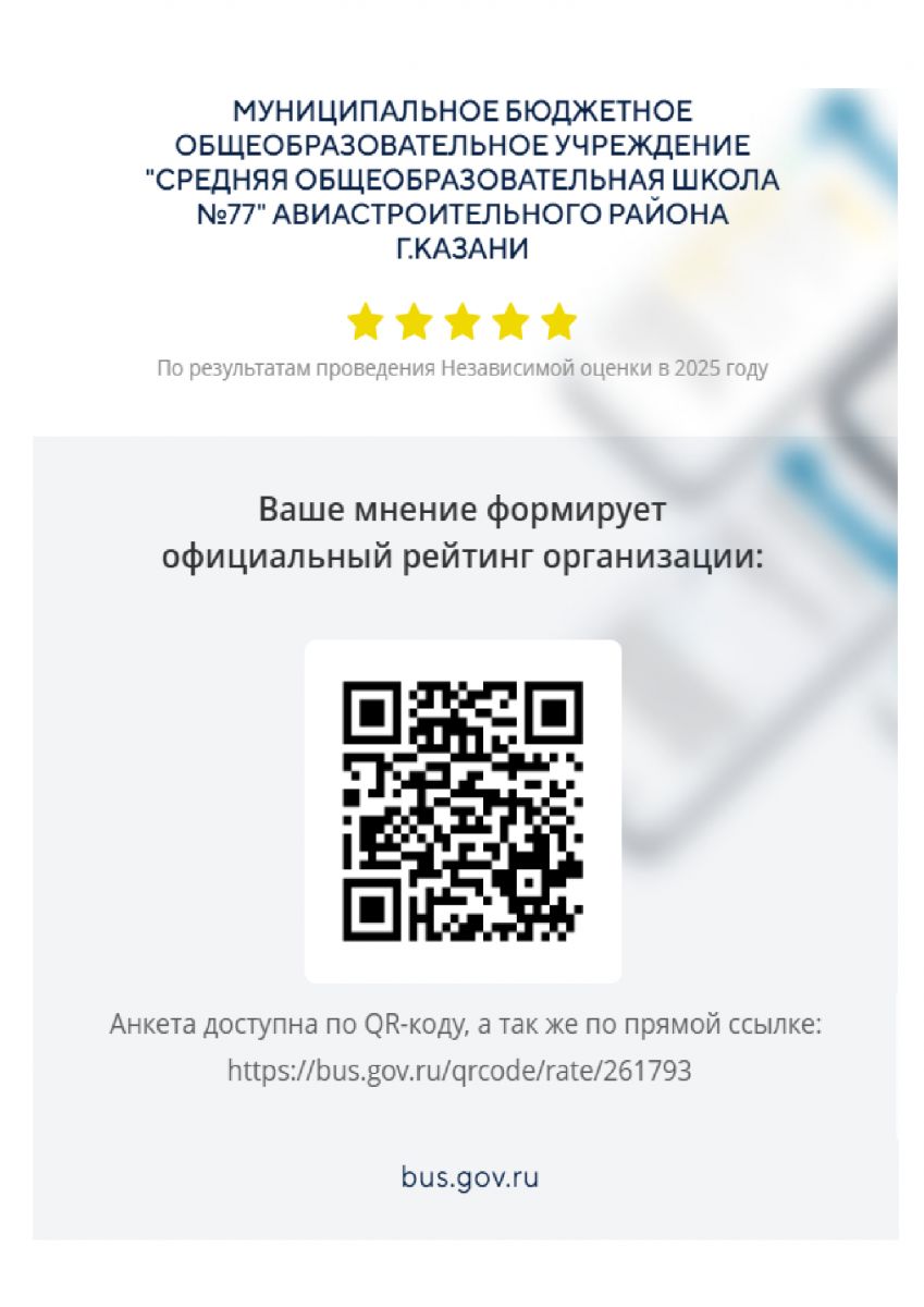 Муниципальное бюджетное общеобразовательное учреждение "Средняя общеобразовательная школа №77" Авиастроительного района г. Казани/ Казан шәһәре Авиатөзелеш районының «77 нче урта гомуми белем мәктәбе» гомуми белем муниципаль бюджет учреждениесе