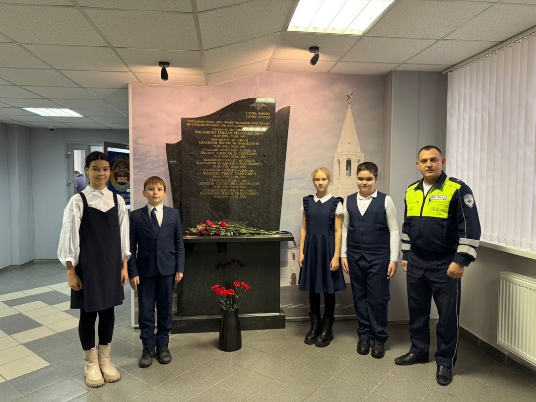 В этот памятный день активисты Движения Первых под руководством Советника по воспитанию Саляховой ГА возложили красные гвоздики к мемориалу погибших сотрудников МВД.