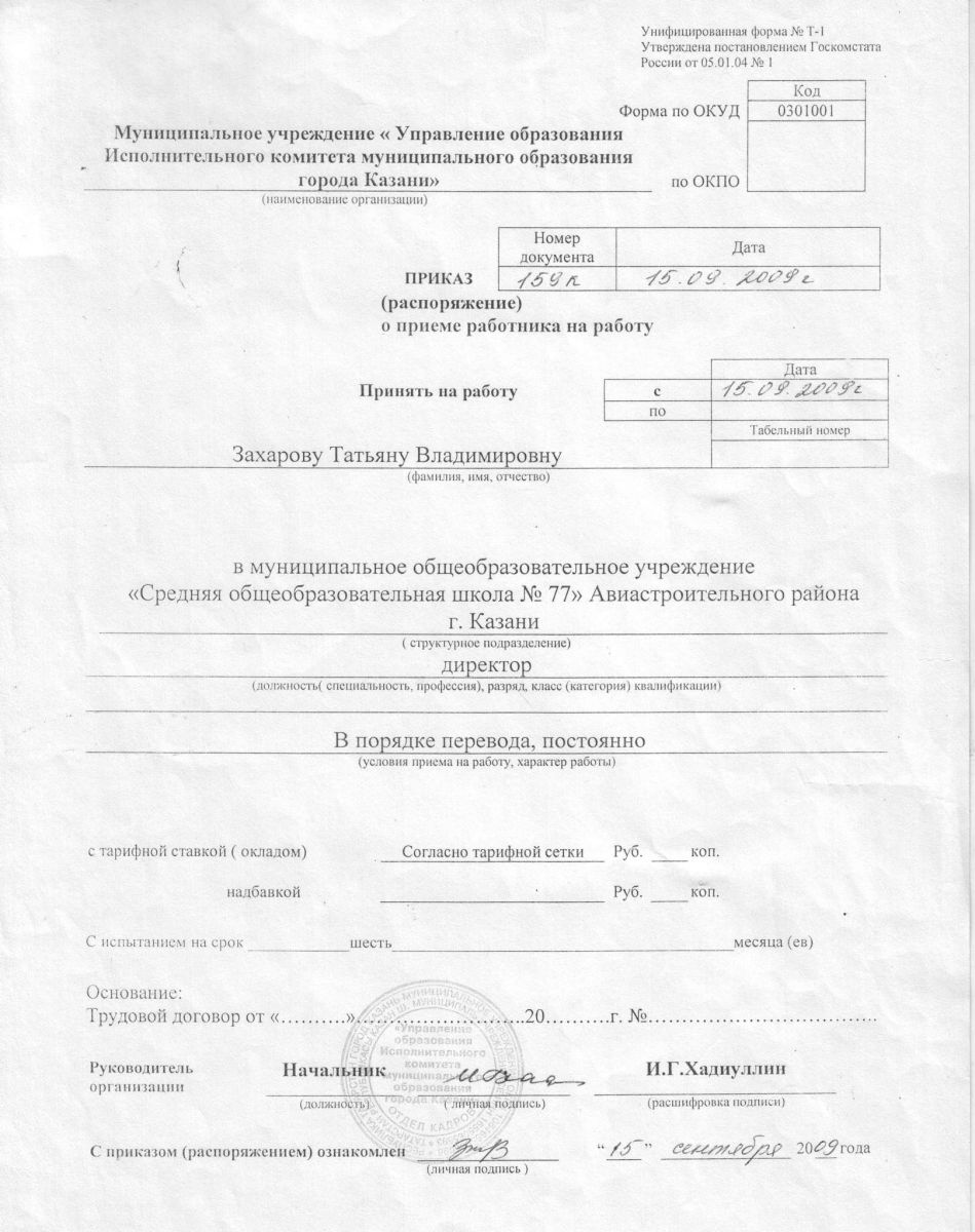 Приказ о назначении на должность