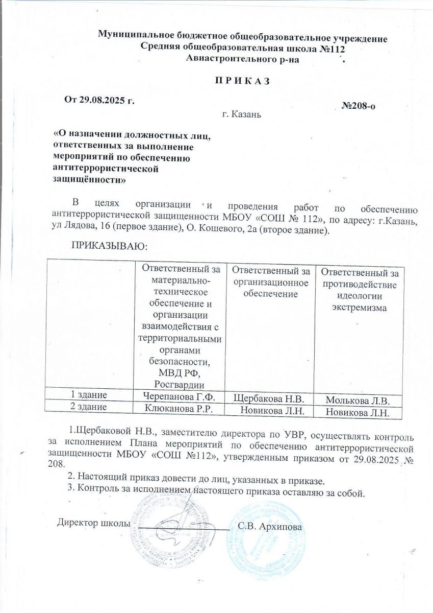 План мероприятий по антитеррористической защищенности МБОУ "Школа №112" в 2025-2026 учебном году"