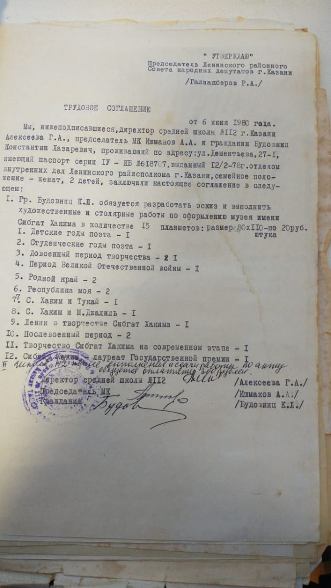 - Трудовое соглашение о создании литературного музея С. Хакима