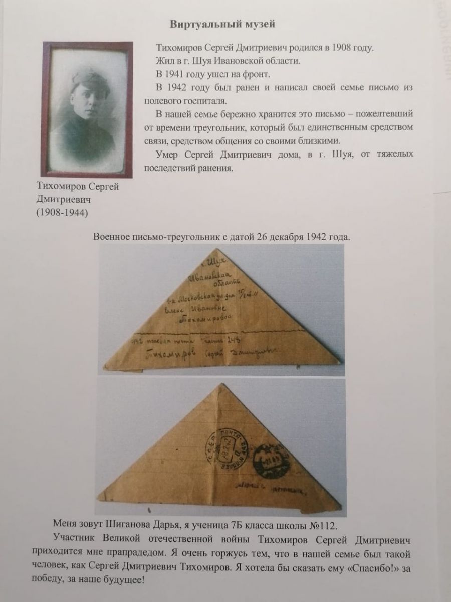 Виртуальный музей, посвященный 75-летию Победы в Великой Отечественной войне 1941-1945г.г.