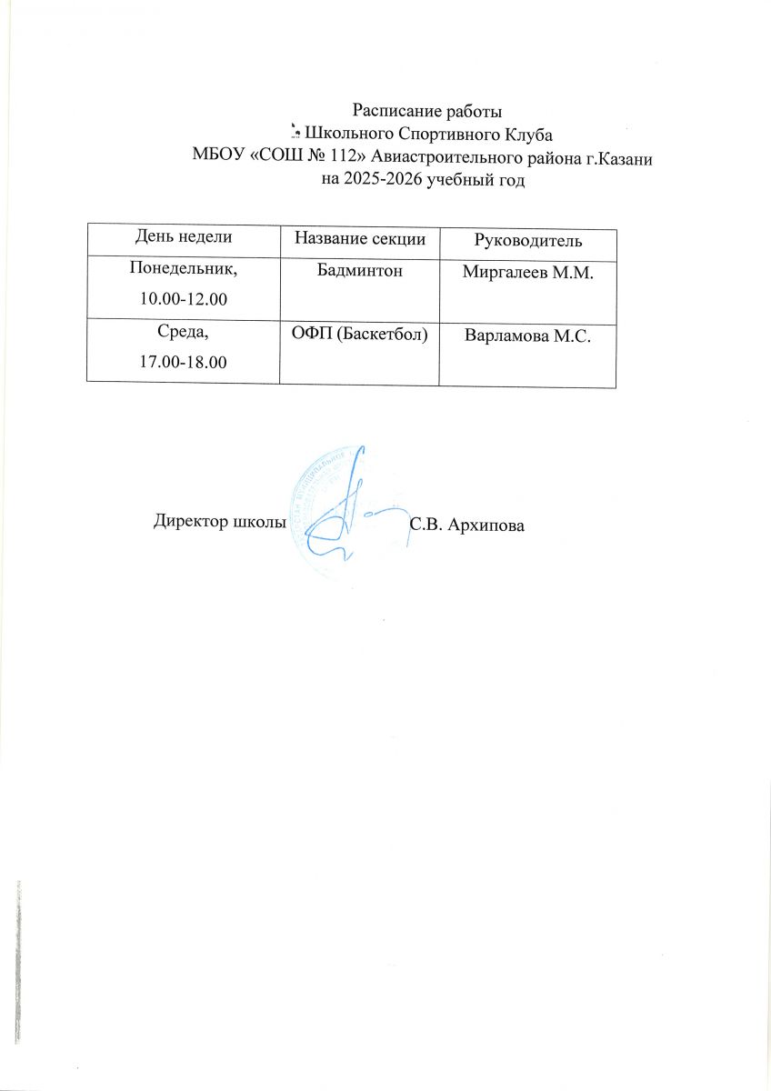 Планы и расписания ШСК