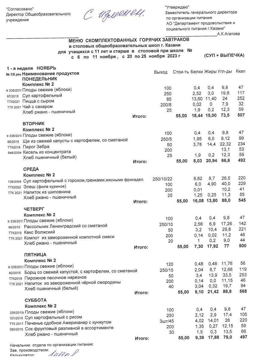 Меню (27 февряла по 1 апреля) для детей с 11 лет и старше