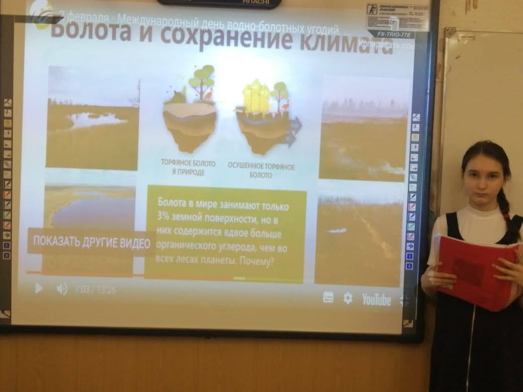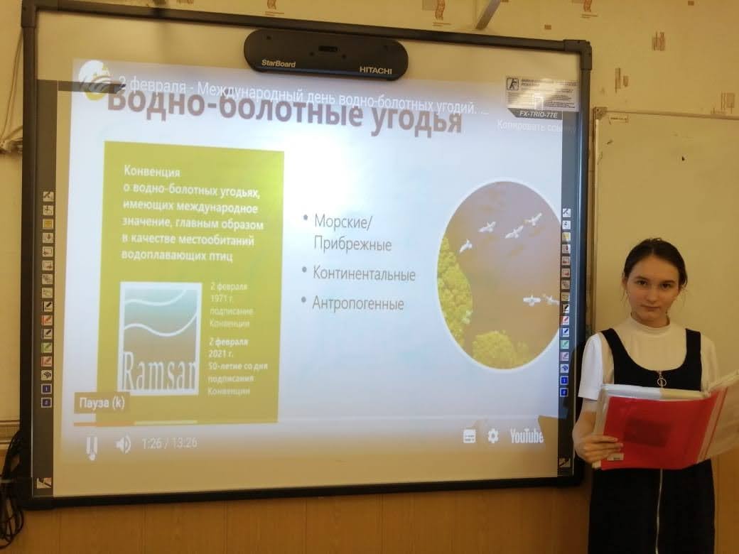 Руководитель экологического кружка "Юный биолог" Желтухина М.М., провела с учащимися 6-9 классов мероприятия, в рамках данного дня.Мероприятия, проводимые ежегодно 2 февраля во Всемирный день водно-болотных угодий (World Wetlands Day), призваны обратить внимание общественности и правительств различных стран мира на ценность водно-болотных угодий для поддержания устойчивого развития нашей планеты.