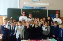 Отряд "Энергодрайв", участники проекта SMS-дети приняли участие в Республиканской акции "Поделись улыбкой". На перемене ребята рассказали учащимся начальной школы о здоровом образе жизни и подарили смайлики в виде улыбочек , далее каждый ученик начальной школы нарисовал свою улыбочку на плакате "Мы за здоровый образ жизни".