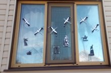 Юные дизайнеры, участники пресс-центра РДШ, создали макеты силуэтов известных памятников, посвященные Великой Отечественной войне, которые ученики вырезали и оформляли ими окна своих домов. В память обо всех участниках войны учащиеся размещали на окнах журавлей по числу членов семьи, принимавших участие в Великой Отечественной войне.