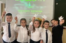 Сегодня в МБОУ «Школа №115» прошли классные часы, посвященные этому памятному событию. Учащиеся начальной школы вырезали голубей- символ мира.