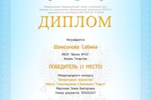 Шамсонова С., ученица 1в класса, стала победителем в Международном конкурсе "Литературное творчество". Стихотворение Е.Благинина "Радуга". Поздравляем!