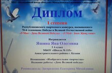 Семьдесят восемь лет прошло со дня окончания Великой Отечественной войны. 9 мая удивительный праздник, который наполняет смешанными чувствами каждого. 5 мая в школе №115 состоялся торжественный митинг, посвящённый 78-ой годовщине Победы в Великой Отечественной войне. Песни военных лет, песни о России, о мире, чтение стихов в исполнении учеников школы завораживали , будто переносили в то страшное, но значимое в истории время. Праздник "со слезами на глазах" вызвал бурю эмоций и оставил глубокое впечатление в сердце каждого из присутствующих. Почётными гостями мероприятия стали ветераны Великой Отечественной войны и труженики тыла. На митинге присутствовали почётные гости: заместитель главы Администрации Авиастроительного и Ново-Савиновского районов Т.Ю.Агафетова, представители администрации. Минутой молчания почтили героев, павших в боях за честь и свободу нашей Родины. Завершили митинг возложением цветов к памятнику участникам и тружениками тыла, лётчику-герою России Р.М.Хабибуллину. Пока мы будем помнить об этой войне - мы будем жить, будет жить наша Родина!