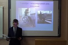 В нашей школе также прошел этот День, ребята подготовили доклады о резолюции, введении Дня инвалида, об оснащениях школ для детей с ограниченными возможностями здоровья -