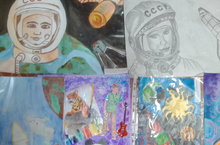 Сегодня в школе прошла выставка рисунков, тема рисунков "Космос", "Гагарин-мой герой!". Луших художников наградили грамотами, порадовали работы Шмелевой Елены из 8 класса, наша юная художница заняла призовое место. Так держать!