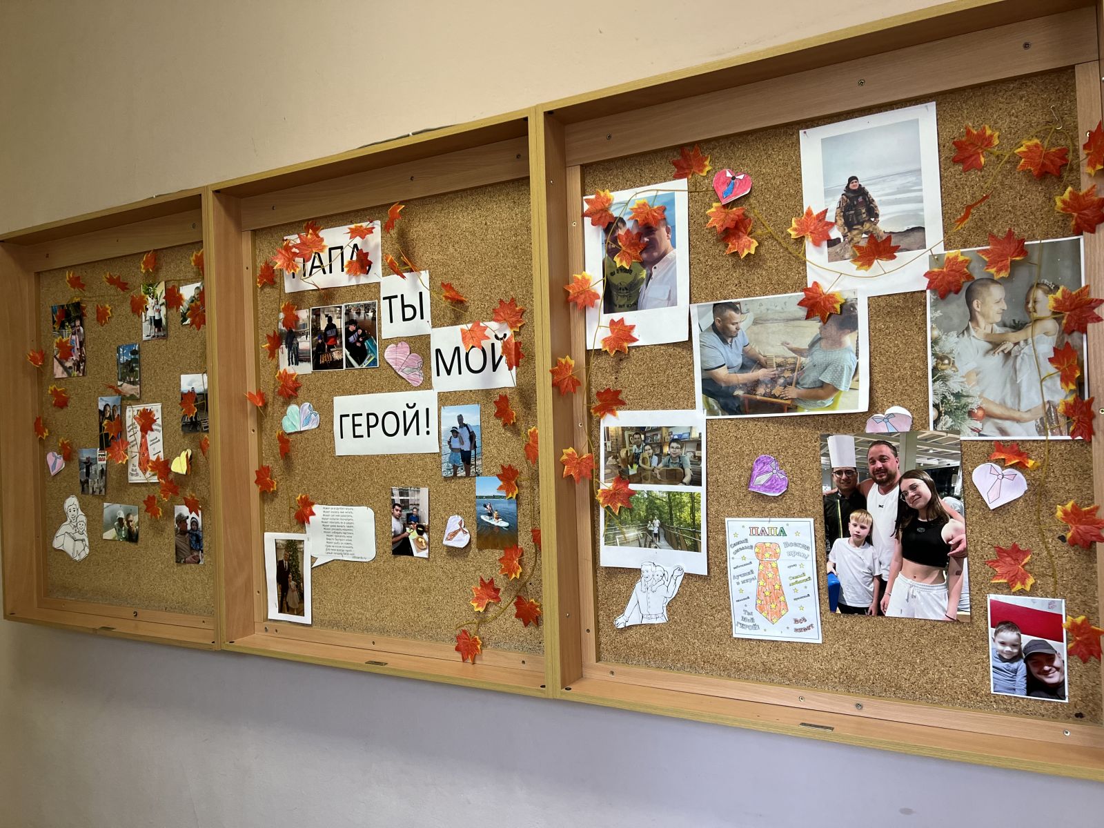 Учащиеся школы собрали любимые фотографии своих отцов и сделали красочный фотостенд