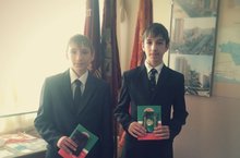 Так стояли они - маленькие граждане и новые защитники Отечества, - смотря друг другу в глаза и желая удачи на жизненном пути: Ахметов Марсель из 7а класса и Пичугин Сергей из 8 а класса. -