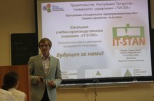 Наша школа представила проект «Школьная учебно-производственная компания «IT-STAN». С докладом выступил автор статьи, учитель физики и математики, исполнительный директор проекта Сергей Иванович Родыгин.