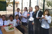 "Арбузник" 18.09.2023 О, король бахчи, арбуз Полосатый толстопуз! Накорми нас, напои, Дружбой всех соедини. Весело и интересно прошел праздник »Арбузник» в 6 а классе. Классный руководитель рассказала, что является родиной арбуза, где и как растет арбуз, к какому семейству относится, какую форму имеет. Ребята услышали также малоизвестные тайны и интересные факты про арбуз, узнали о памятниках арбузу, а также о его полезных свойствах. Участники мероприятия с удовольствием отвечали на вопросы викторины, приняли участие в конкурсах » Посади семечко», «Собери урожай», «Составь пословицу», а в конкурсе «Хвалебное слово» столько комплиментов арбузу сказали !Главным сюрпризом для ребят стало сладкое угощение, всё с удовольствием угощались сладким, сочным арбузом. Ребята получили настоящий заряд бодрости. Всем было вкусно и весело.