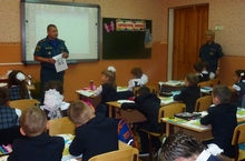 Сегодня прошел "Урок безопасности" для учащихся начальных классов, в школу был приглашен начальник отделения НД по Авиастроительному району по г.Казани ПЧ-5 Данилов Роман Владимирович и инспектор ПЧ Вагизова Гузель Дамировна. Урок прошел очень интересный и познавательный.
