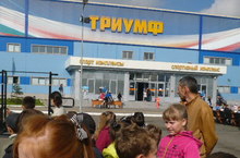 7 сентября 2013 года ученики нашей школы ходили на День открытых дверей в СОК "Триумф". Экскурсовод пригласила всех ребят заниматься спортом и показала ледовую арену, на которой выступали фигуристы и тренировались хоккеисты.В бассейне можно было понаблюдать за пловцами. На ковре спортивного зала боролись дзюдоисты, рядом выступали юные гимнастки. В тренажерном зале молодые люди качали мышцы. На площади перед СОК "Триумф" были представлены легкая атлетика, шахматы, велосипедный спорт и настольный теннис. Дети с удовольствием посмотрели концерт, поучаствовали в мастер-классах, радостные пускали мыльные пузыри.