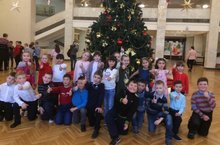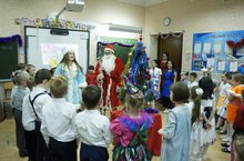 Сегодня в 1Б классе прошёл Новогодний праздник. Дети показали родителям сказку "Новогодние приключения колобка", а затем водили хоровод вокруг елки. На праздник к нам приходили Дед Мороз и Снегурочка и подарили детям подарки. А водить хоровод и играть вокруг елки ребятам помогали вожатые из 5Б класса.