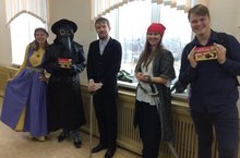 Победителей конкурса костюмов, украшавших собой школу всю неделю: Ермолаева Тимура 10а, Мулюкова Тимура 9б, Макарова Данила 9б.