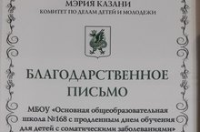 Школа № 168 награждена Благодарственным письмом за активное участие в реализации мероприятий в рамках проекта «Расширяй горизонты».
