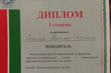 Поздравляем ученика 6 класса Соболева Антона, победителя региональной научно-практической конференции «Эколого-географическое знание в современном образовательном пространстве школы». Администрация школы благодарит за подготовку победителя конференции учителя географии и биологии Шишову Э.Р.