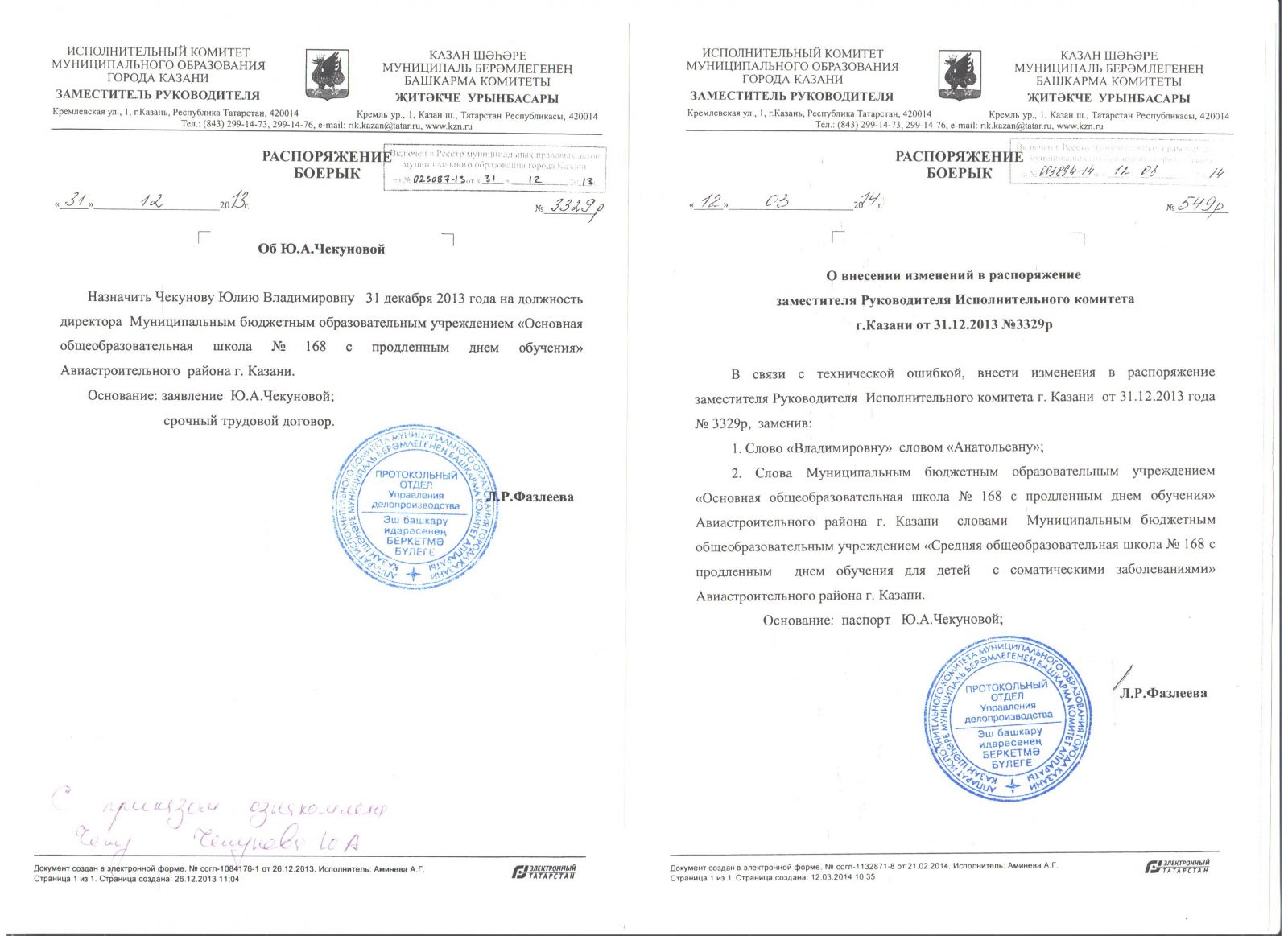 Приказ Учредителя о назначении руководителя муниципального учреждения