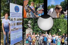 Учащиеся объединений пдо Григорьевой А.И. и Серякина Г.А. из отряда имени А.А. Леонова организовали сеанс тротуарной астрономии для жителей Авиастроительного района в парке Крылья Советов. Любой желающий мог посмотреть на Луну в один из двух телескопов с разным увеличением или в бинокль, сделать фотографию через окуляр на память, а также ознакомиться с подробной картой лунной поверхности.
